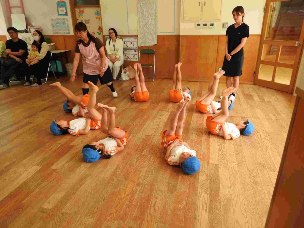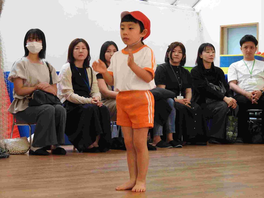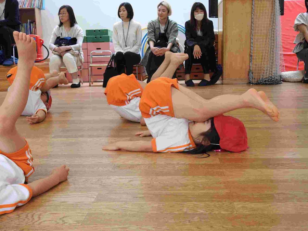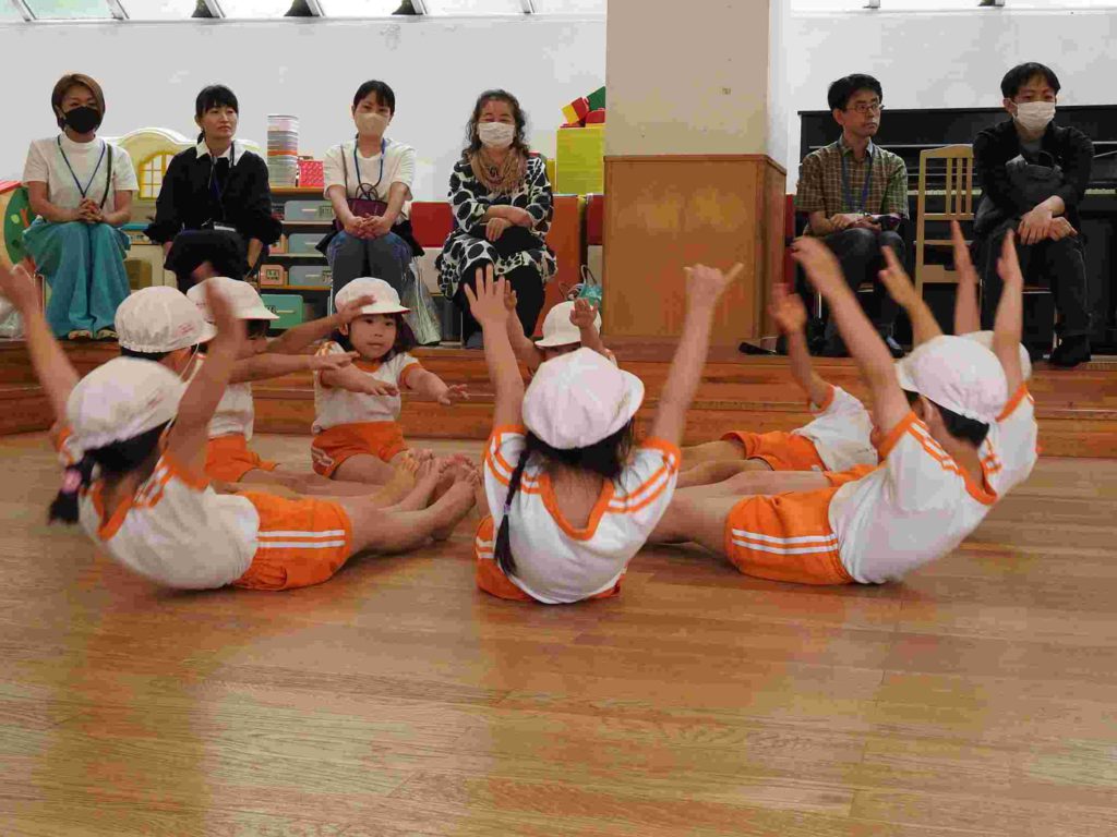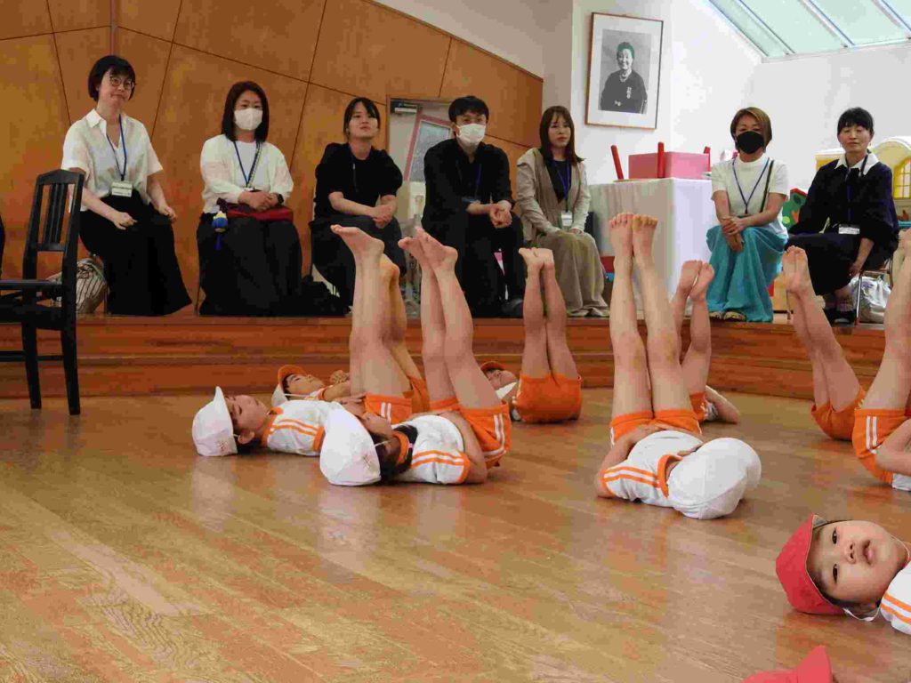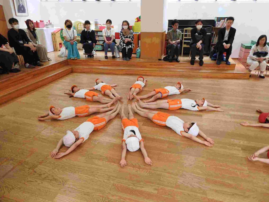 参観後、保育室に戻った園児は口々に「緊張した…」と話したそうです。そのあと、担任の先生から「リトミックチャンピオンだよ!」と褒めてもらって大喜びだったとのことです。写真からは緊張感も伝わってきますが、リトミックを楽しんでいる様子も見られます。