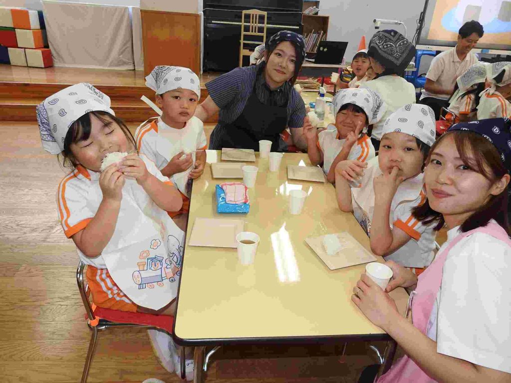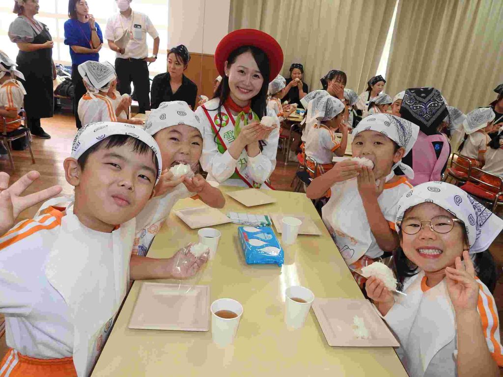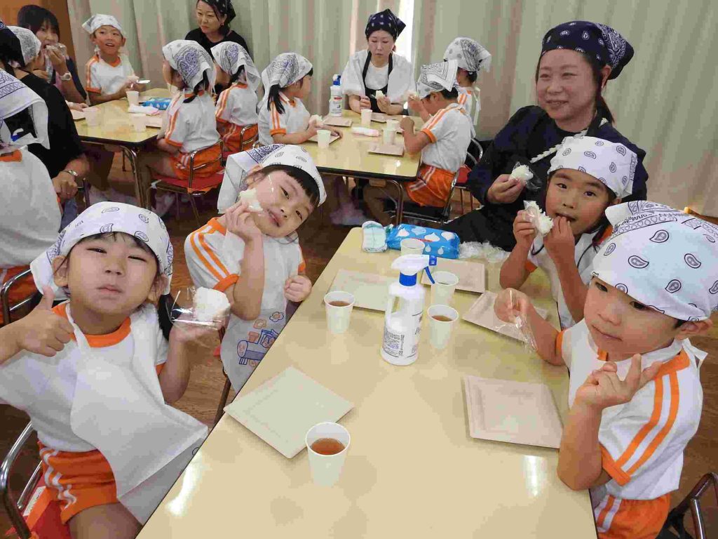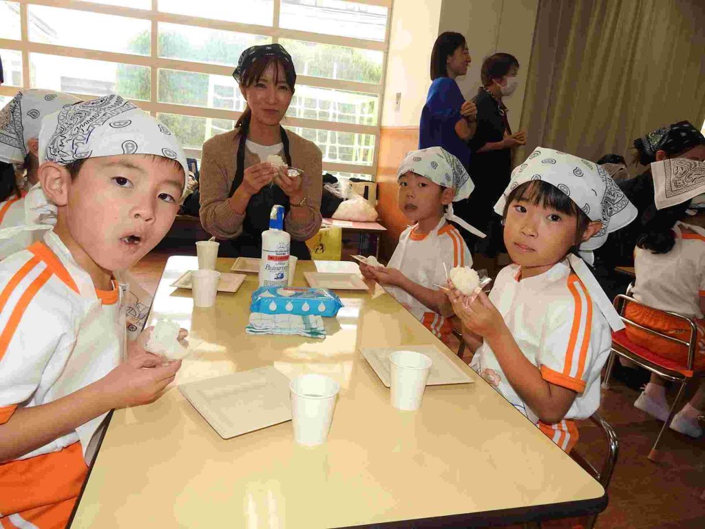 みんな上手におにぎりを作りました。おにぎりの形は様々で、まん丸いおにぎり、さんかくおにぎり、ハート形おにぎり、それぞれ趣向を凝らしました。「いただきます」のあいさつ、一斉に食べ始め…。「おいしい!」あちこちから声が上がります。美味しいお米であることに加え、自分でおにぎりを作り、みんなと一緒に食べることがさらに美味しく感じたのでしょう。本日の企画は、12月に発行される「あんふぁん年末年始号」に掲載されます。