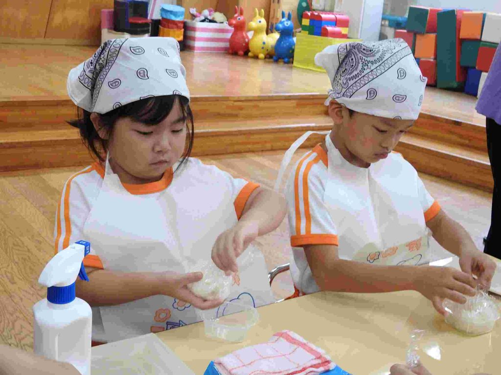 第120回幼稚園だより「年長 作ったおにぎりを美味しくいただく」