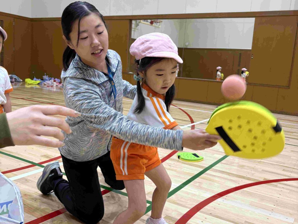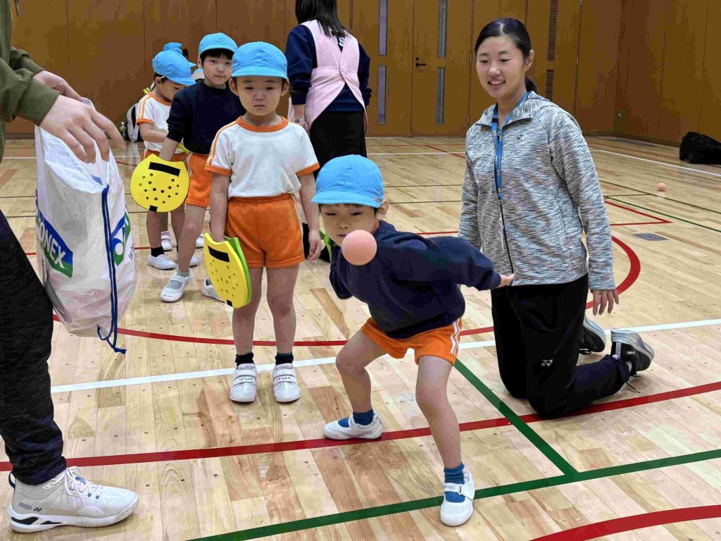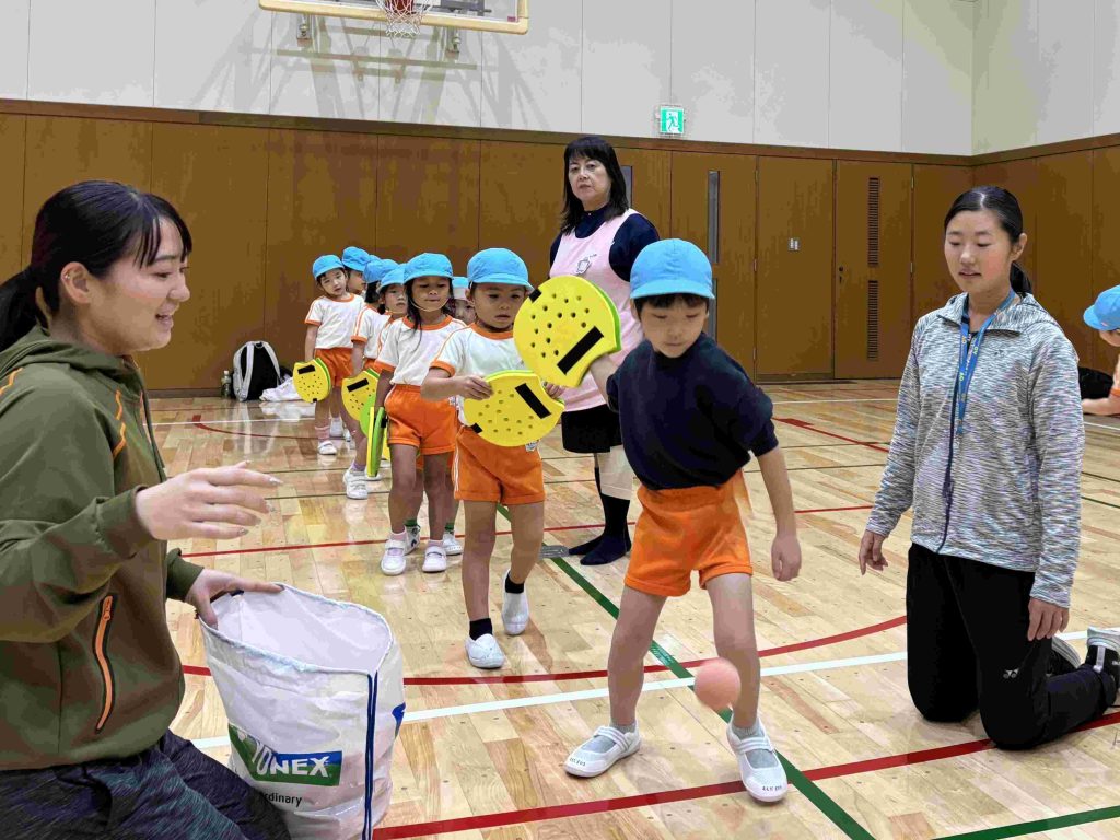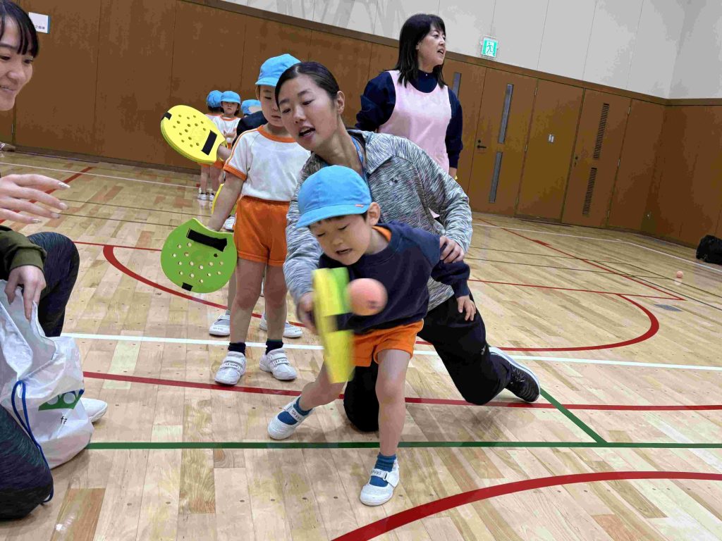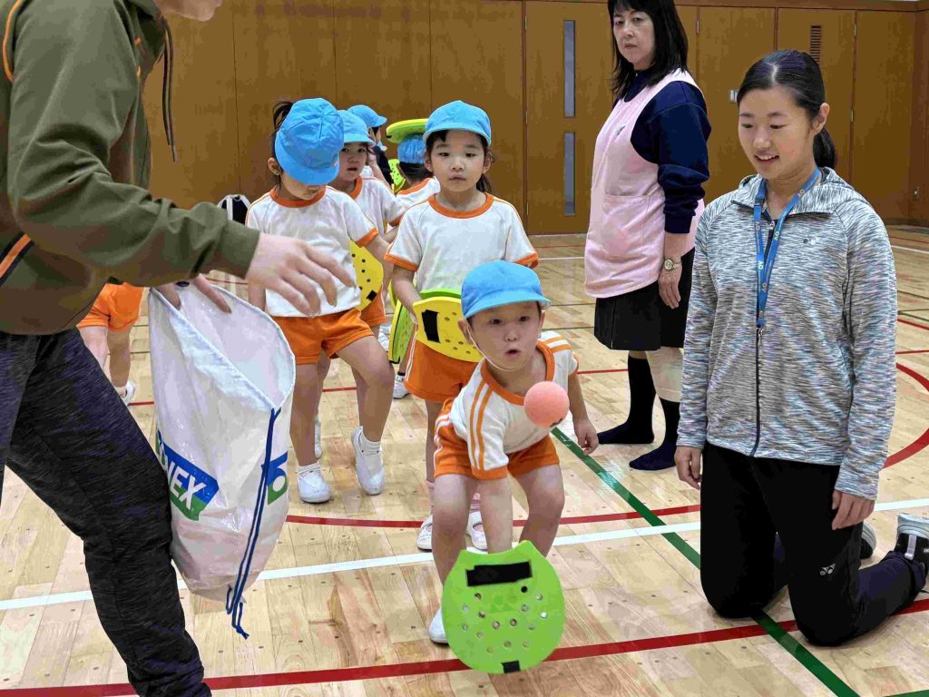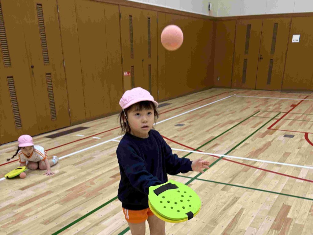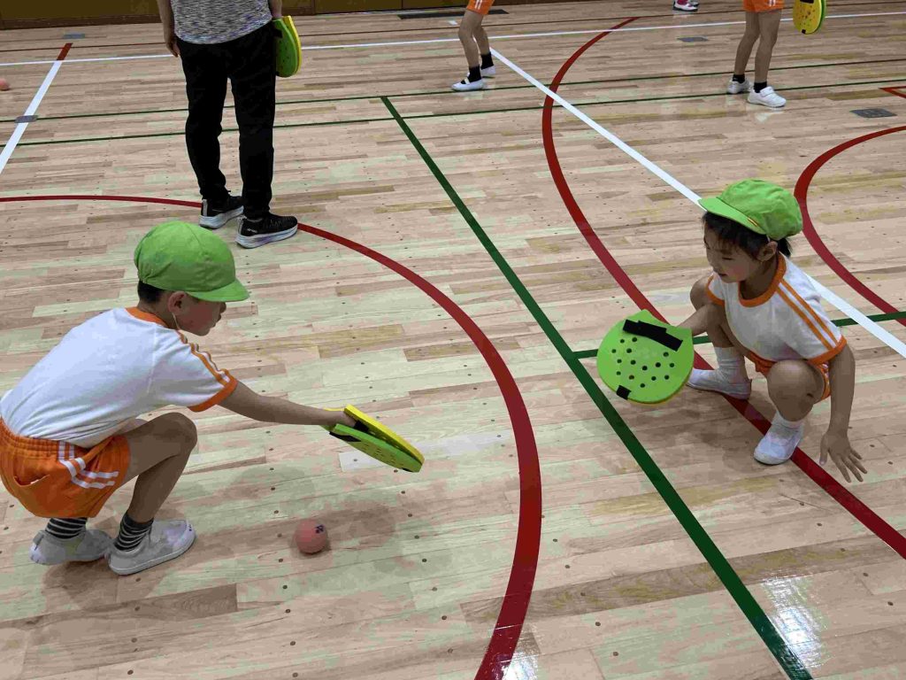 11月5日(水)、年中・年長組はテニピン(テニス)教室に取り組みました。講師はヨネックスジャパン(文京区湯島)の方です。今日は1回目なので、ラケットの持ち方ボールつき、ボールを転がしてラリー、ワンバウンドで打つ、」など基礎的なことを学びました。次回は少しレベルが上がりそうです。園児に優しく丁寧に教えてくださったヨネックスジャパンの方には感謝しかありません。貞静幼稚園ではこの後、バスケットボール教室、チアダンス教室が続きます。スポーツの秋です。
