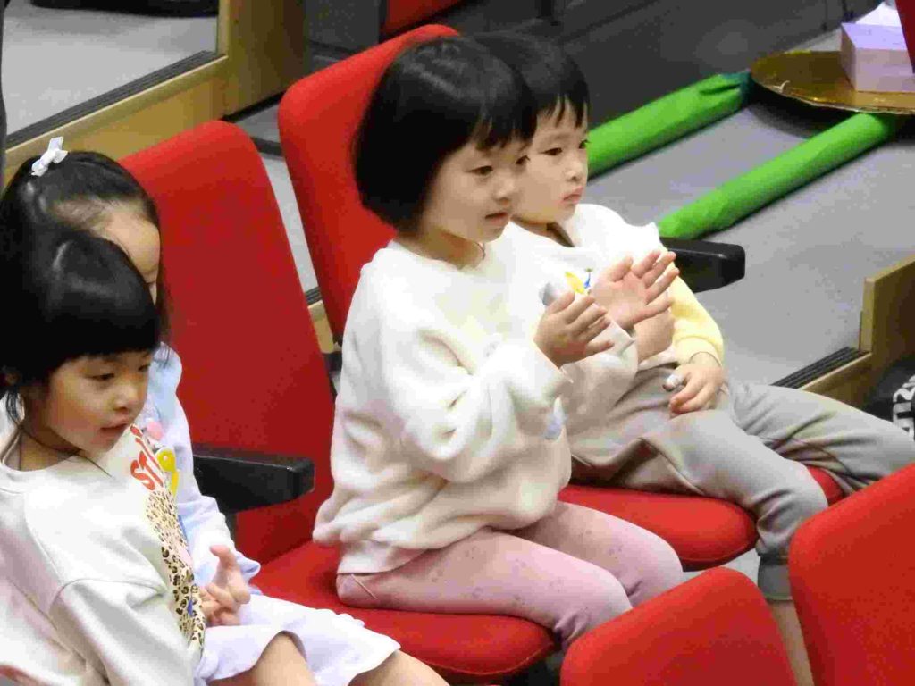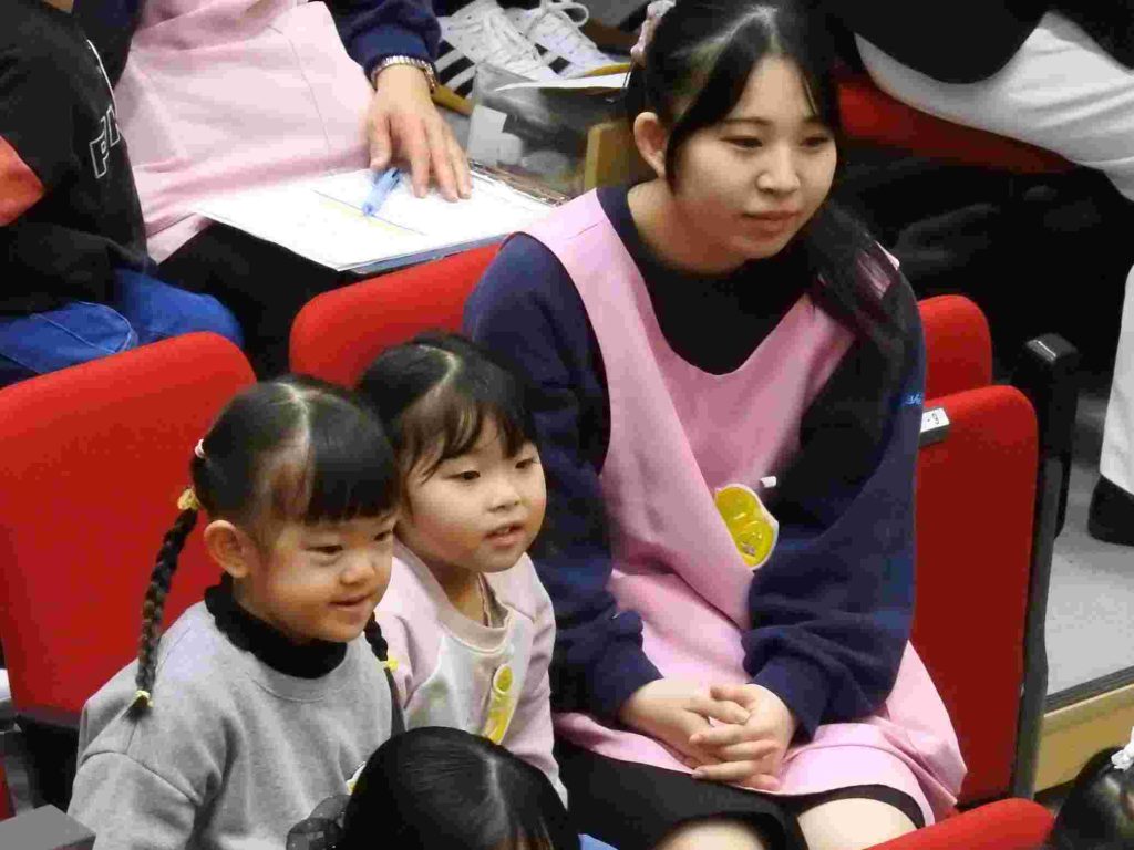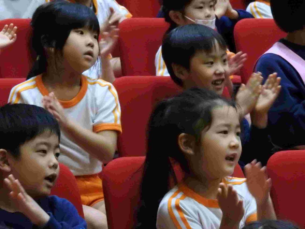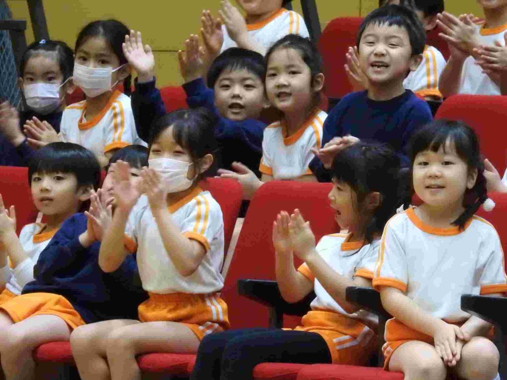 12日(金)貞静学園高校幼児教育コースの3年生が園児を招いて発表会を行ってくれました。歌や手遊び、劇、ペープサートなど様々な取り組みを披露しました。幼児の視点に立ったとてもいい取組でした。園児と一緒に参観していた幼教コースの1・2年生も発表を盛り上げていました。園児も楽しませてもらい、大喜びでした。