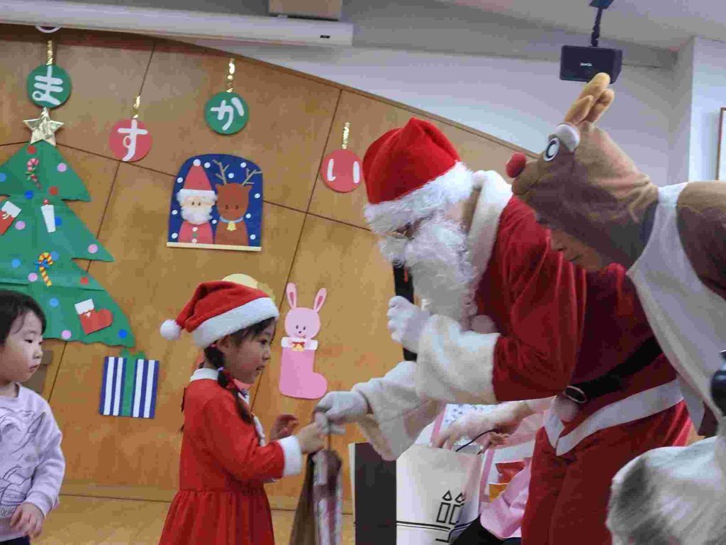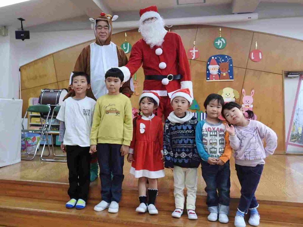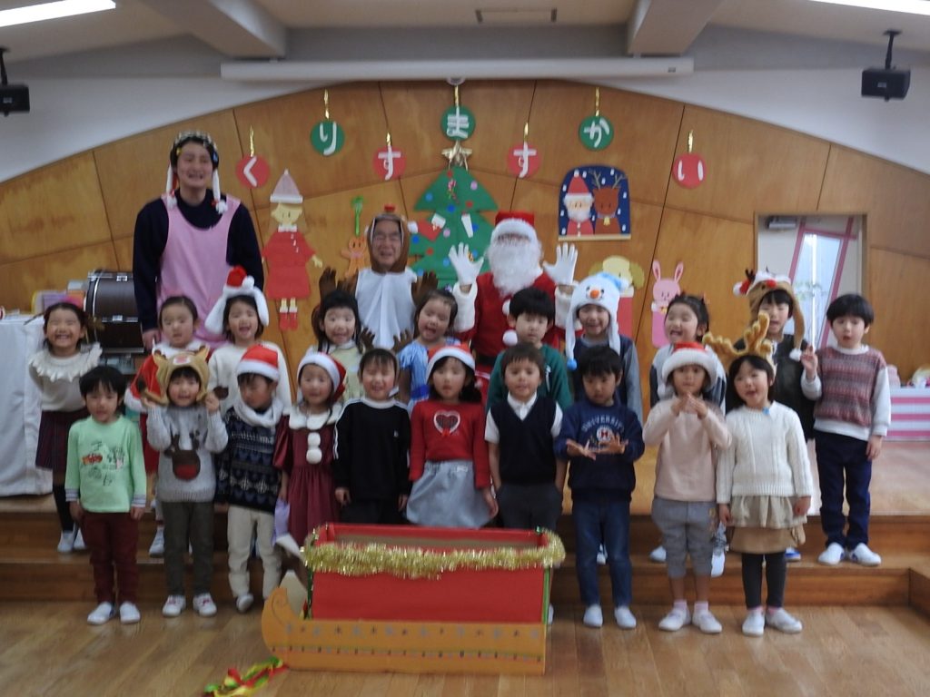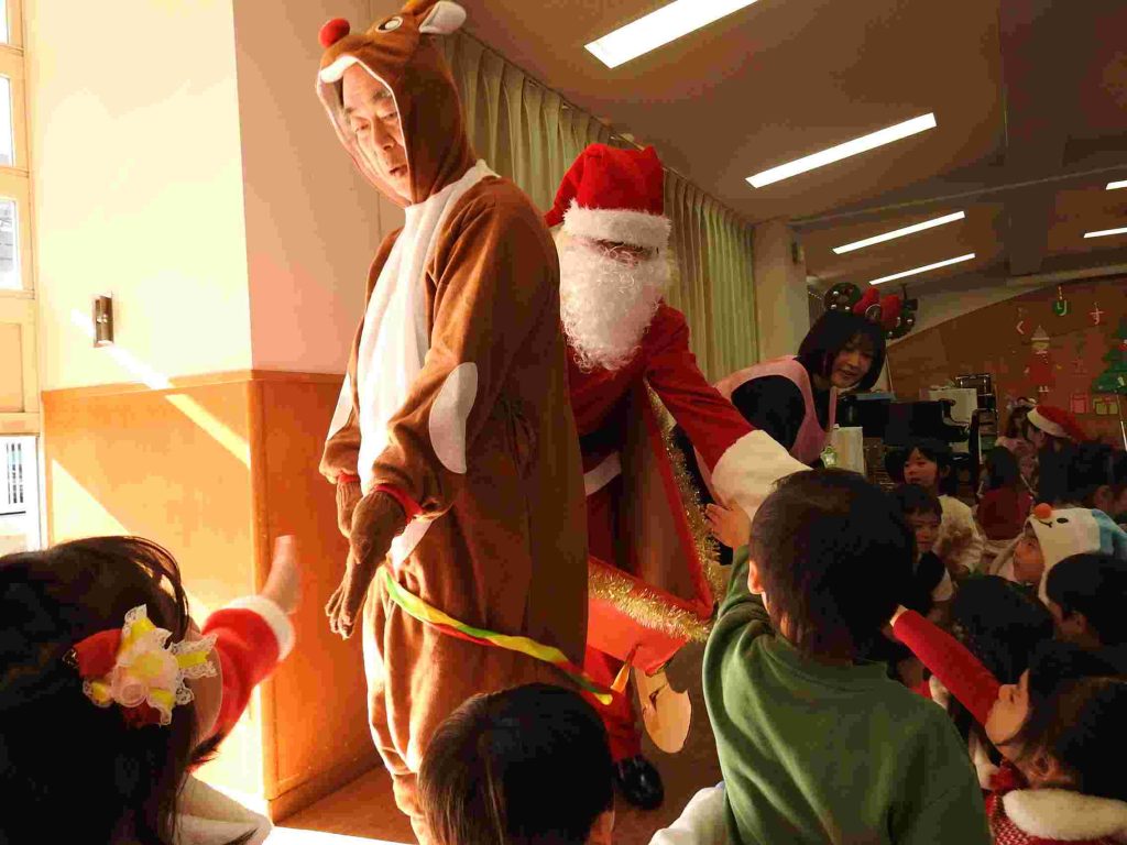 今年も貞静幼稚園にサンタクロースとトナカイがやってきました。今年のサンタクロースはフィンランドの村からやってきたとのことで、英語と日本語を交え、園児からの質問に答えてくれました。サンタさんからのプレセントのお礼に、園児は「サンタが街にやってくる」の歌を、先生方は「アナと雪の女王」から「雪だるまつくろう」「レット・イット・ゴー」の合奏を贈りました。