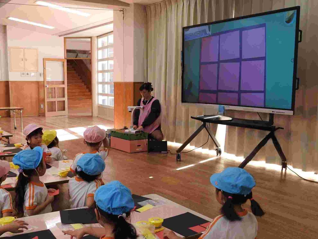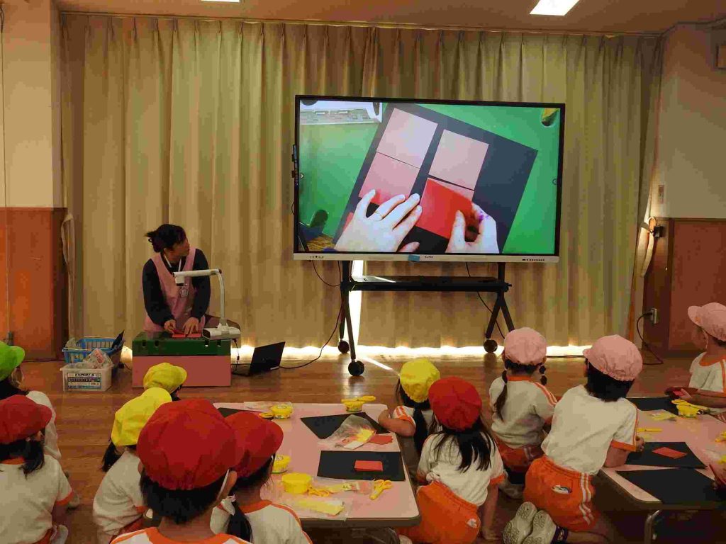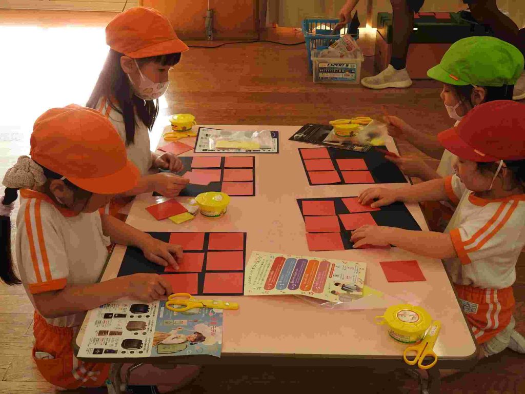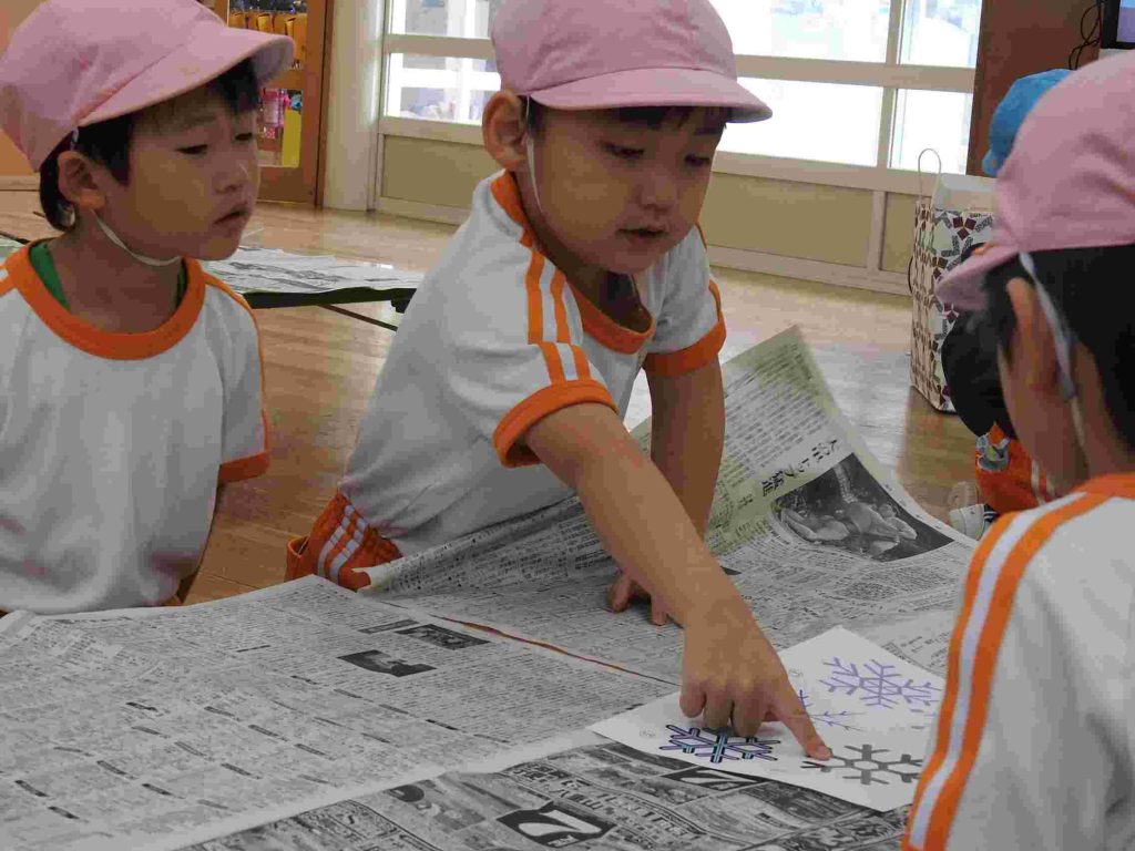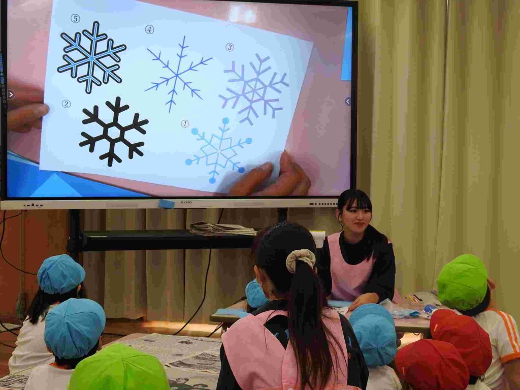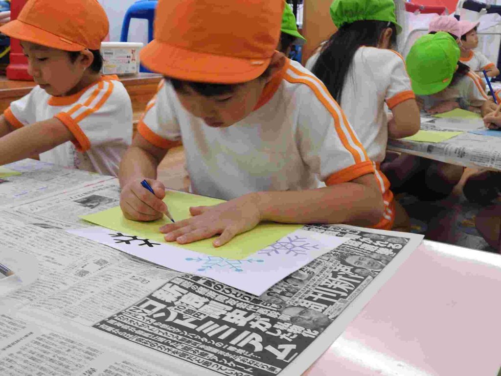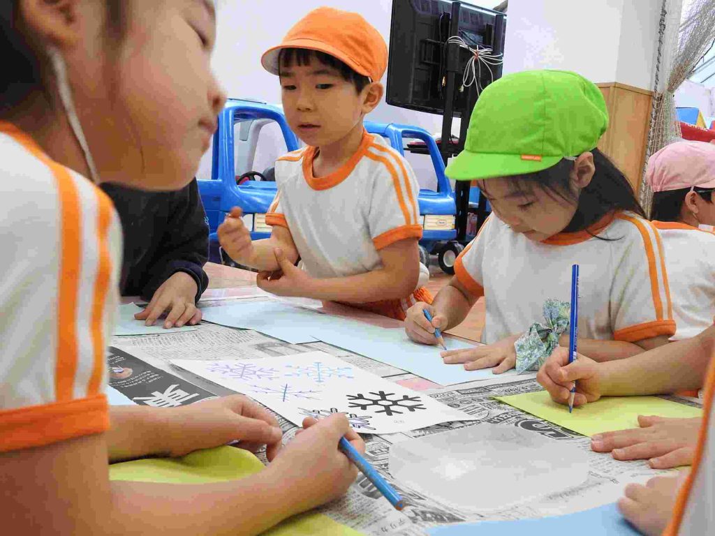 幼稚園の入り口にある菜の花が咲き始めました。冬至が来たばかりですが、貞静幼稚園には春の足音が訪れているかのようです。冬休み中の預かり保育が始まりました。夏休みの預かり保育と同様、その日その日にテーマがあり、自由遊びと組み合わせて1日の保育が計画されます。ただ1日遊んでいるわけではありません。テーブルに異学年の園児が並んでいます。これも預かり保育の特徴です。普段接することが少ない異学年の交流があるのもいいところです。