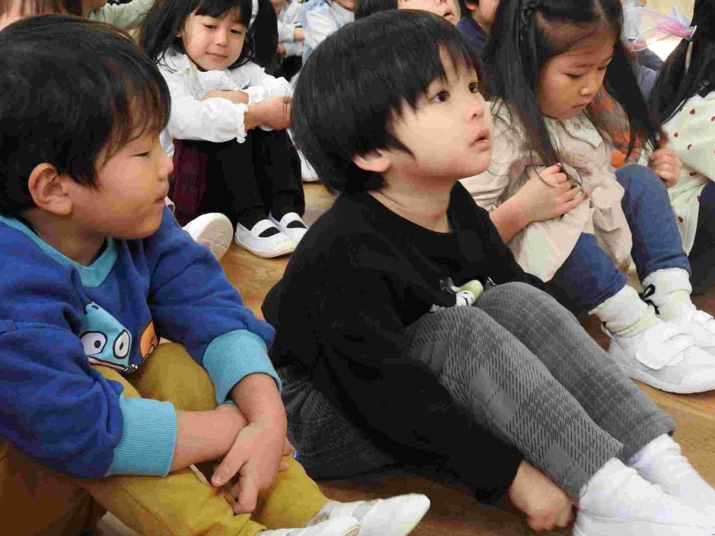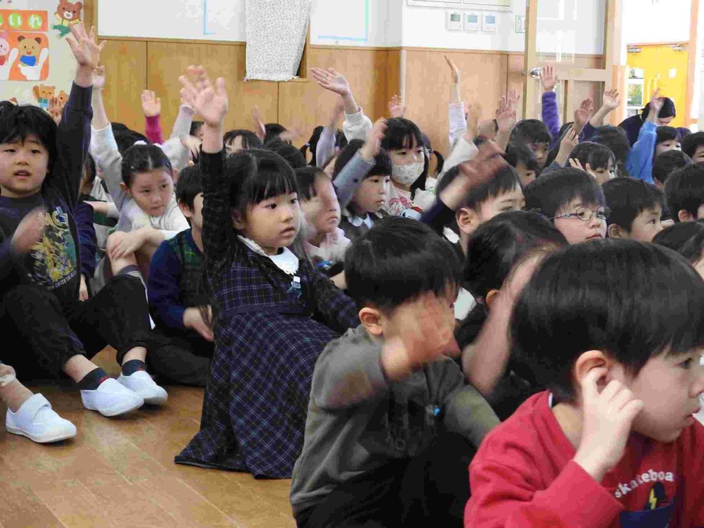 幼稚園に元気な顔が帰ってきました。園内に楽しそうな声が響いています。始業式では、冬休み前に約束した3つのことができたかどうか、やってほしいこと(絵本を読む)をやったかどうかを尋ねましたが、しっかりできたと手を挙げる園児が多くて、安心しました。もう話したいことがいっぱいある!という顔が並んでいます。3学期は2か月足らずしかありません。あっという間です。短い期間に1年間のまとめがしっかりとできるように気を引き締めて保育に取り組んでいきます。