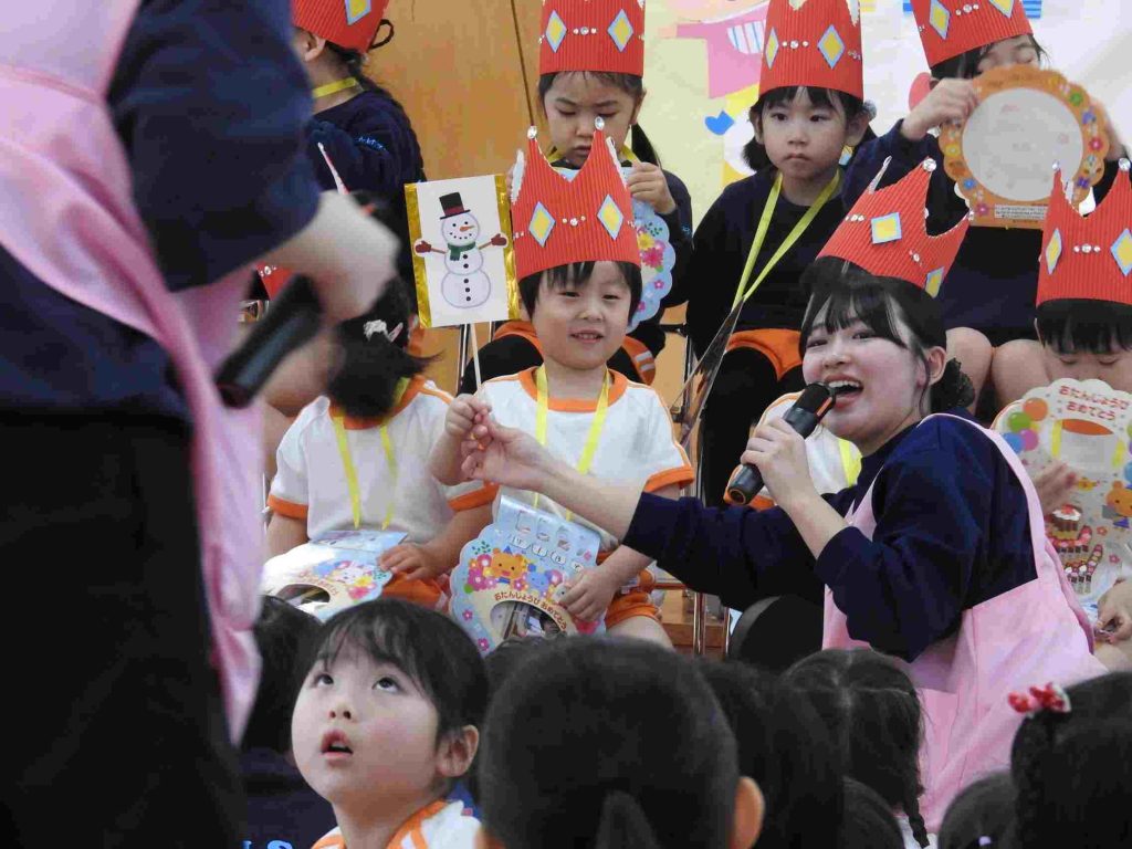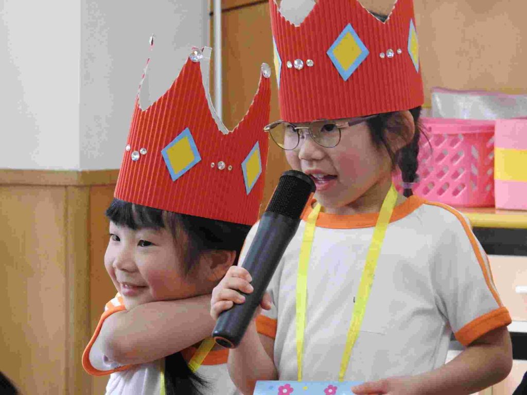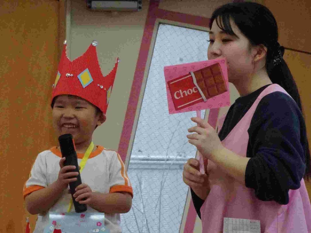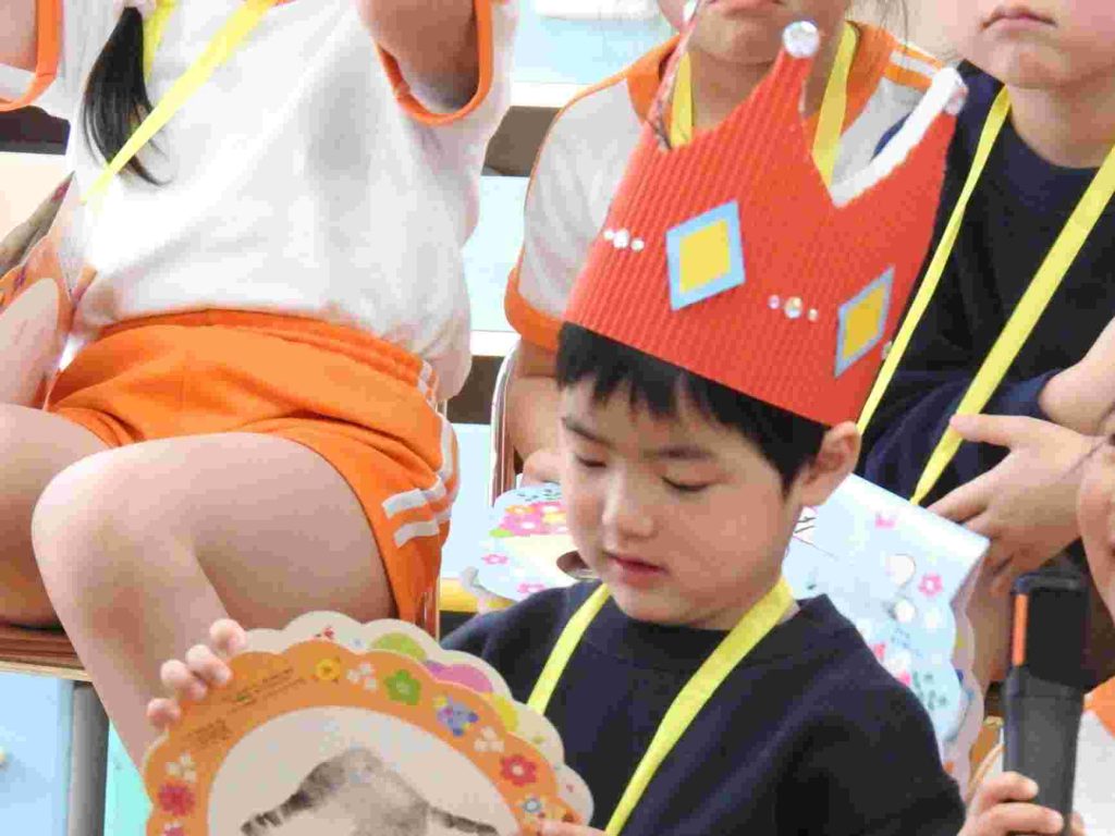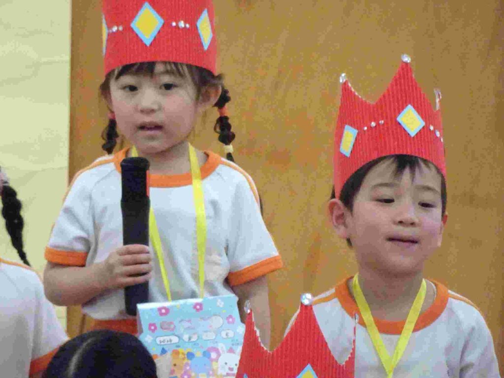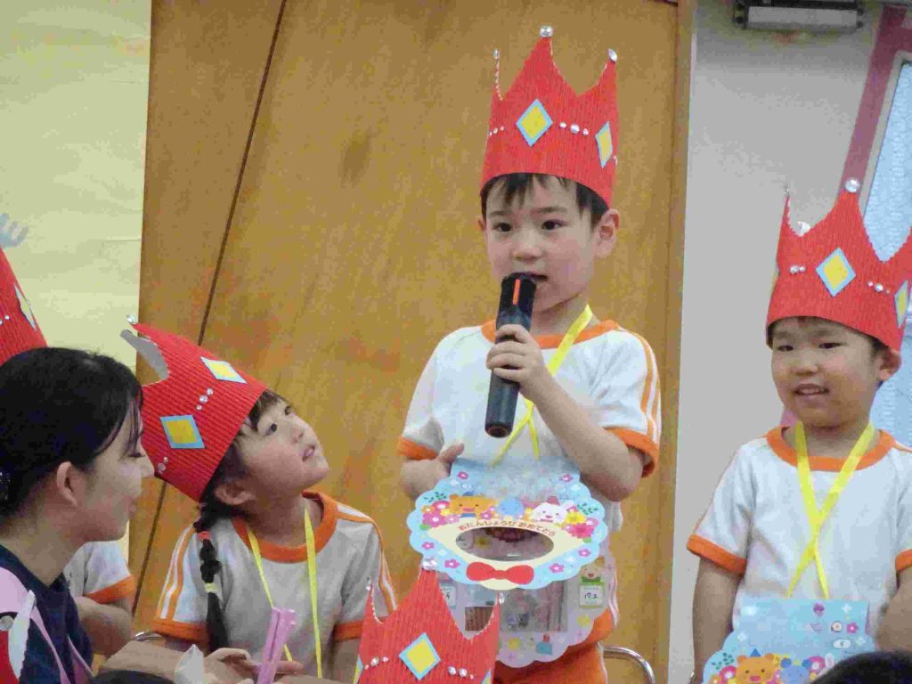 今日は1月、2月のお誕生日会でした。1月はインフルエンザ拡大防止のため、お誕生日会は行いませんでした。今日は、インフルエンザでお休みの園児はいませんでした。1月2月生まれの園児は質問に一生懸命答えました。ちなみに園長の質問は「好きなプリンセスは誰ですか?」でした。