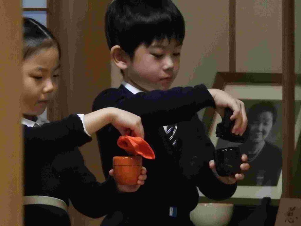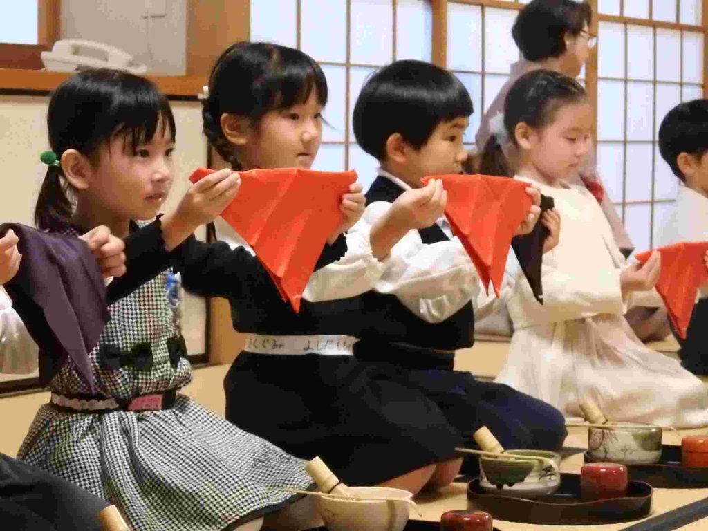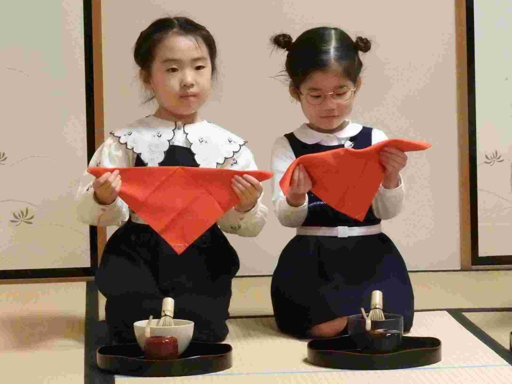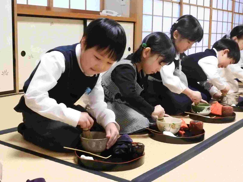 保護者の皆さまをお招きしてお茶会を催しました。年長組の園児は作法も所作も立派です。凛とした空気の中でこれまで学んできたことを見ていただきました。「今まで飲んだお茶の中で一番美味しかった」と話してくださるお母様もいらっしゃいました。将来、国際社会に羽ばたいていく子どもたちがこの時期に日本文化に触れていくことは非常に大切であると思います。