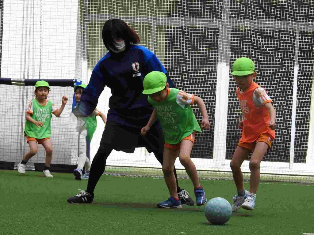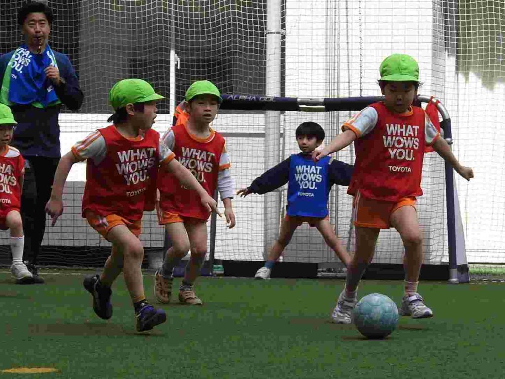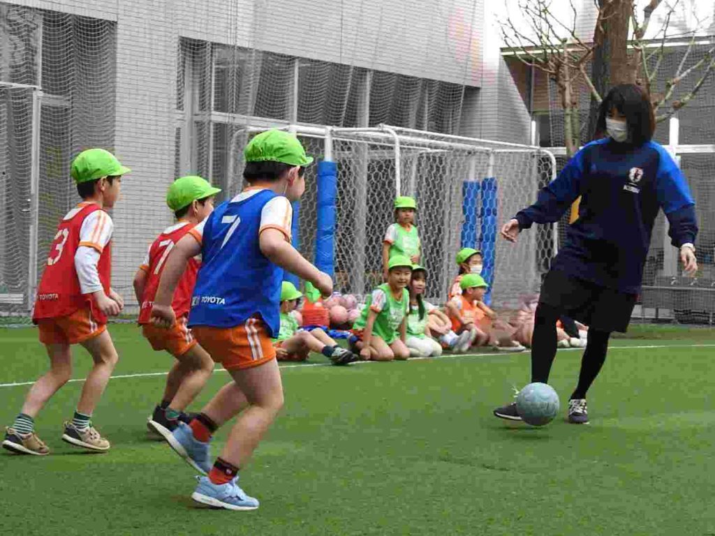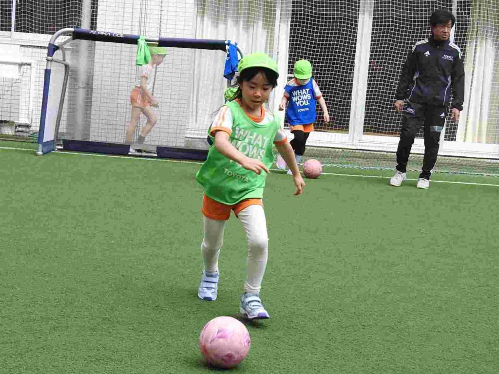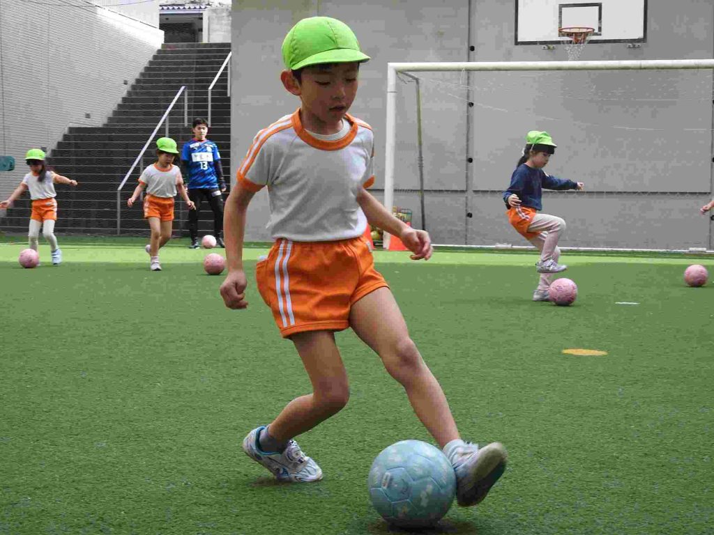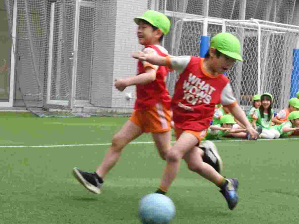 サッカー上手になりました。ボールを蹴る、止める、走るということがしっかりとできていました。さらに、前向きな気持ちをもって全力で取り組むこともできています。一人ひとりがサッカーを楽しんでいます。今日は東京都サッカー協会の方に加え、東京ユナイテッドからも指導の方がいらっしゃいました。園児が楽しくサッカーに取り組む工夫をしてくださいました。ありがとうございます。