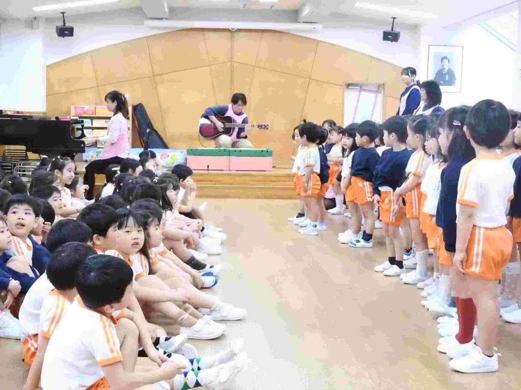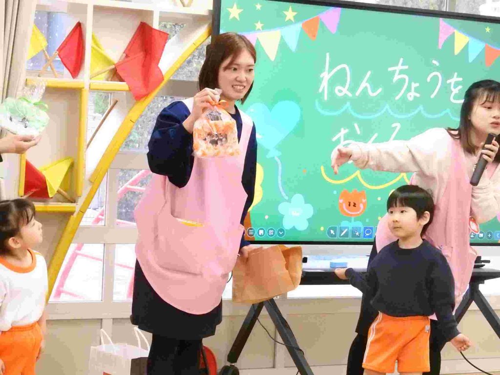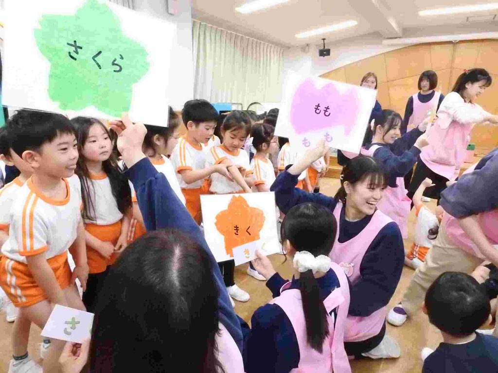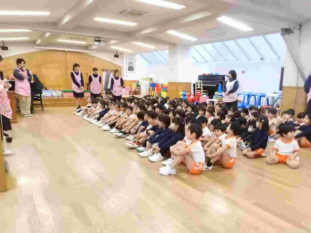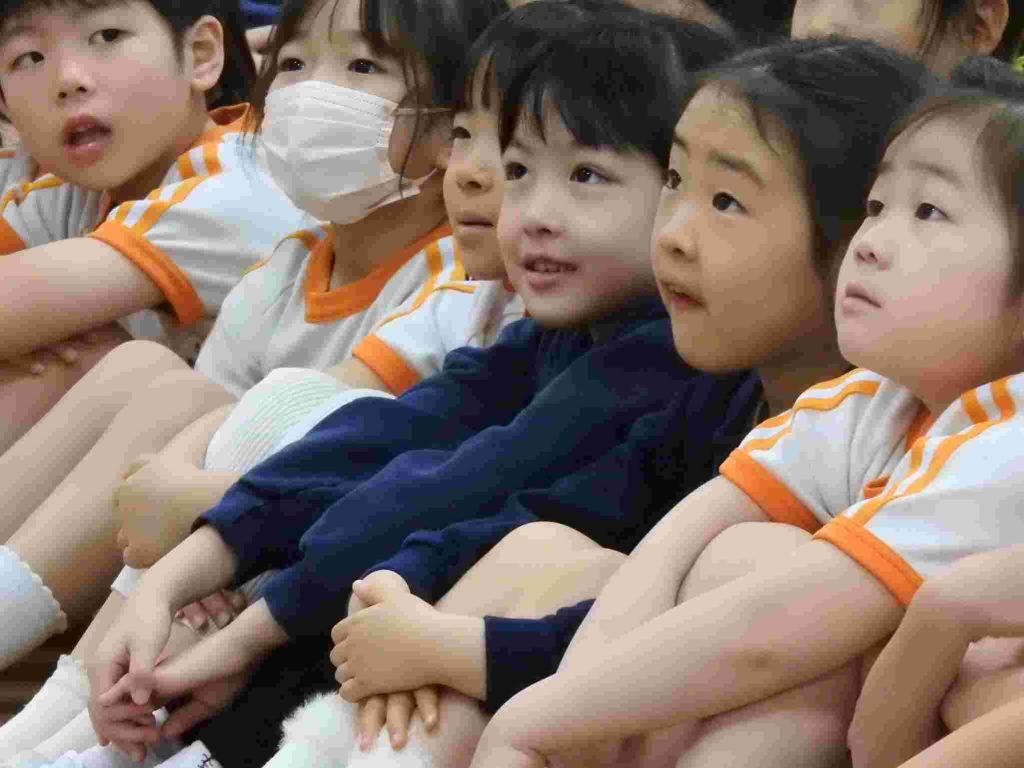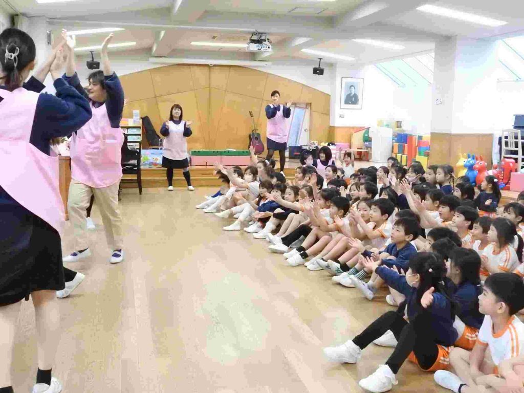 今日は「年長を送る会」を行いました。年少、年中組からは年長組一人ひとりに手作りのプレゼントが贈られました。年長を代表して担任の先生に手渡されたのですが、そこで「ドッキリ」がありました。さすが年中組、趣向を凝らしました。先生方はダンスを披露して盛り上げました。年長組は幼稚園への記念品として手作りの「クラス表示」を渡してくれました。この後、表示を入れ替えます。最後には卒園式で式歌として歌う「旅立ちの日に」を年少・年中に贈りました。とてもきれいな歌声で、聴く人の心に響く歌でした。卒園式では参列者全員で歌います。参列なさる方は練習してきてください。お願いします。