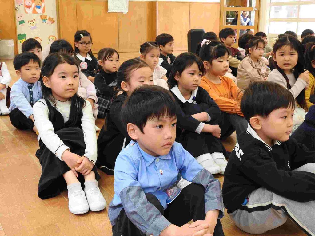2025年度修了式を行いました。園長からはこの1年間で成長したこと、4月からはそれぞれ進級するということを話しました。3つの約束もすっかり定着し、①早寝早起き ②食べすぎ注意 ③道路への飛び出しは絶対にダメ は園児から声が上がりました。式の最後には元気に歌を歌いました。