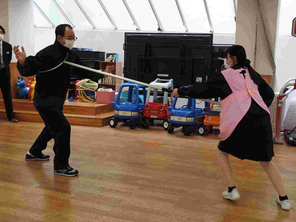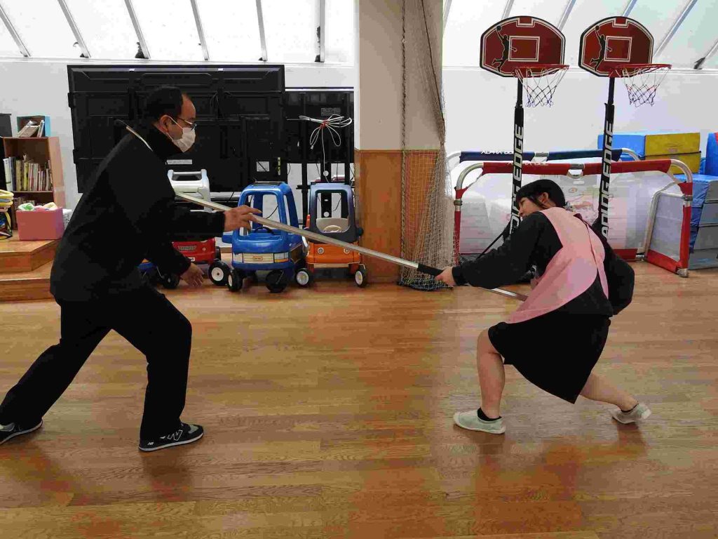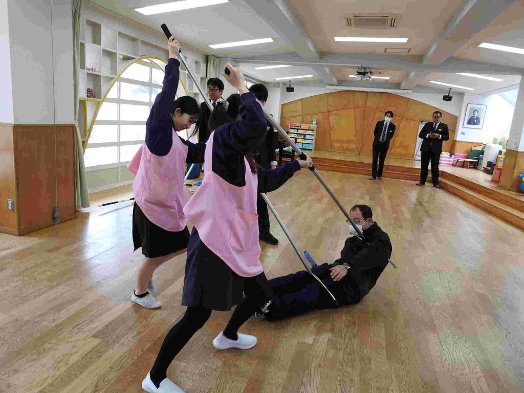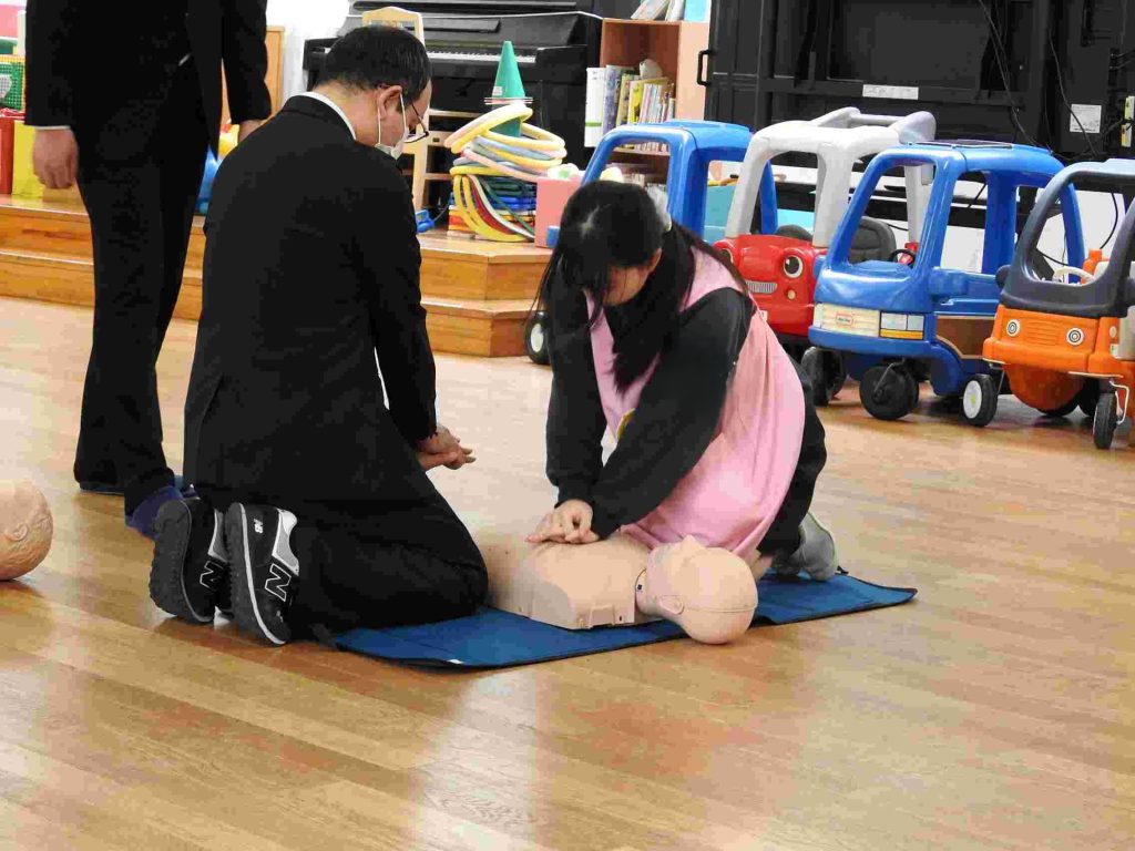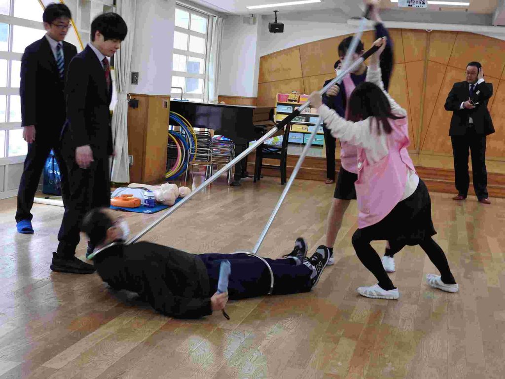 万が一の事態に備え、先生方が取り組みました。防犯訓練ではさす股を使い、暴漢を制圧する訓練、救命講習ではAEDを使い、心肺蘇生の訓練を行いました。真剣そのものです。
