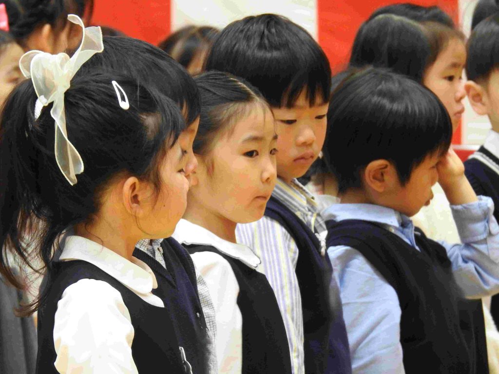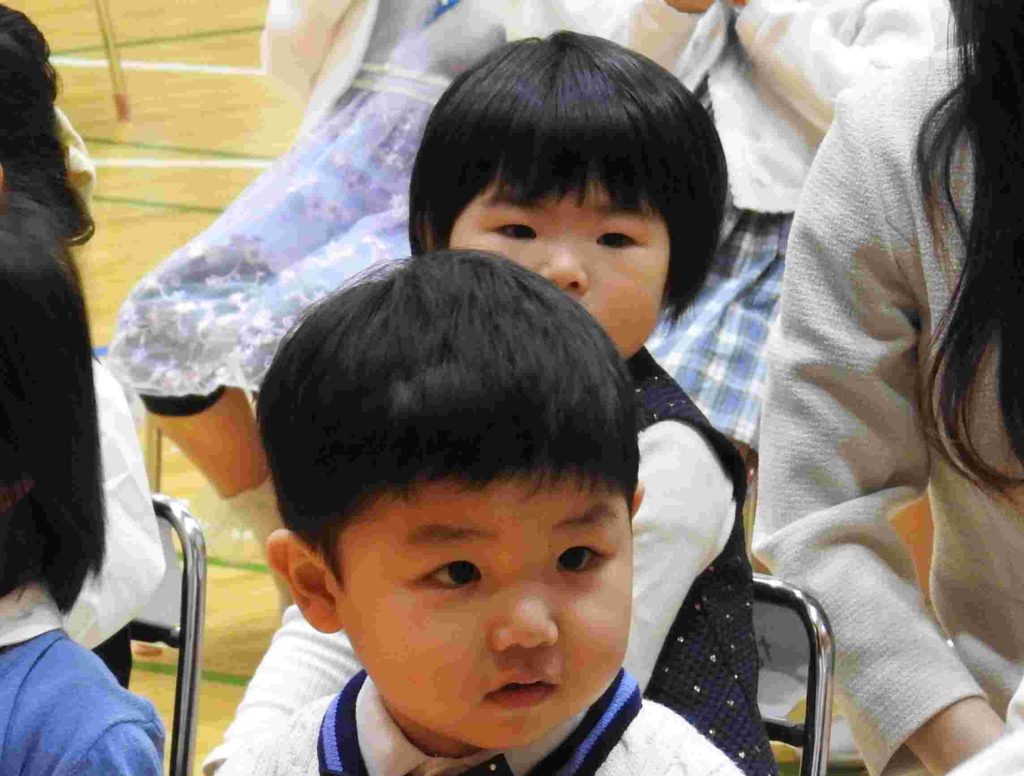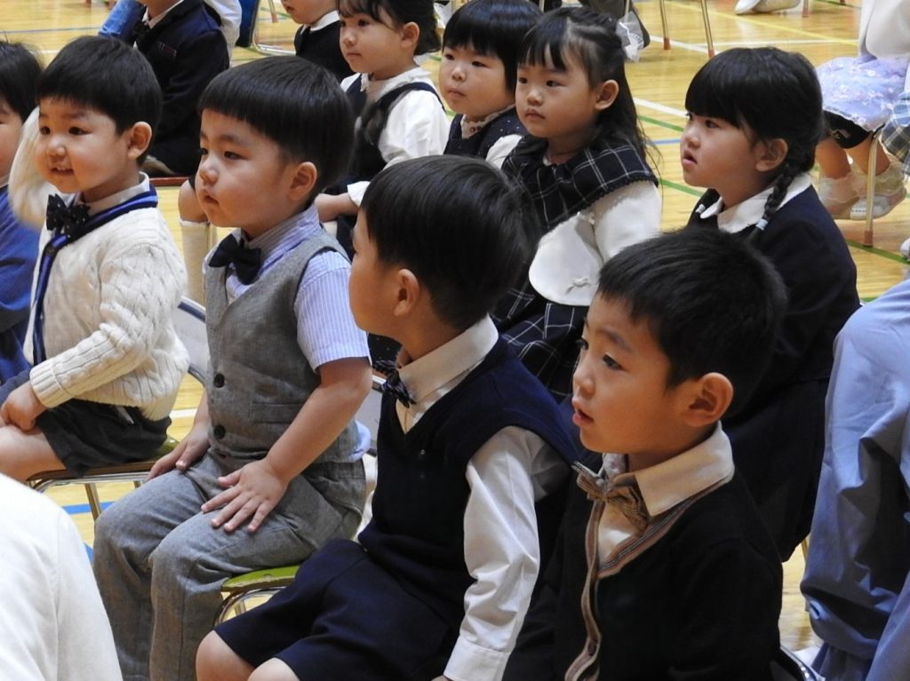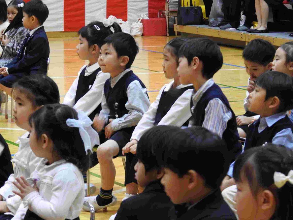 本日、2026年度入園式、第1学期始業式を中学校高等学校体育館で行いました。今日、貞静幼稚園の園児になった新入園児は元気に手をあげて「はいっ」と返事をする子も、呼名されるとはにかみながらも一生懸命返事をする姿がとてもかわいらしかったです。進級した園児は、3月の時より少し大人っぽくなったように見えます。「みんな。楽しい毎日が待ってますよ!」