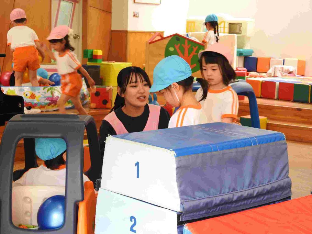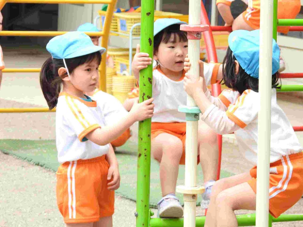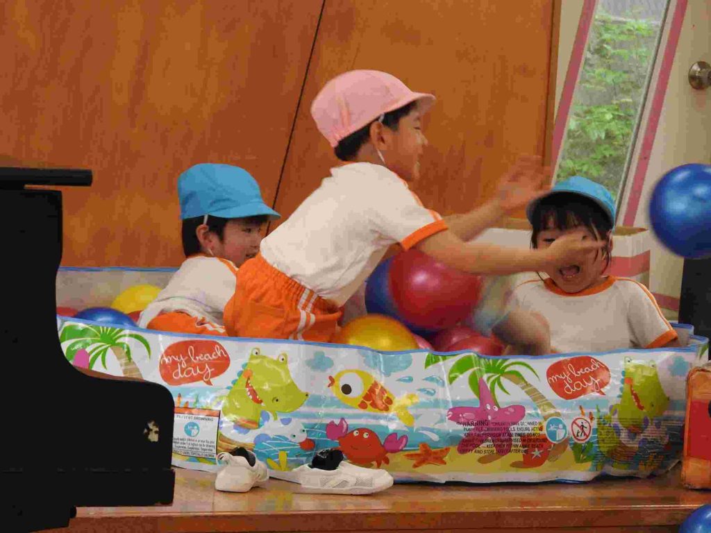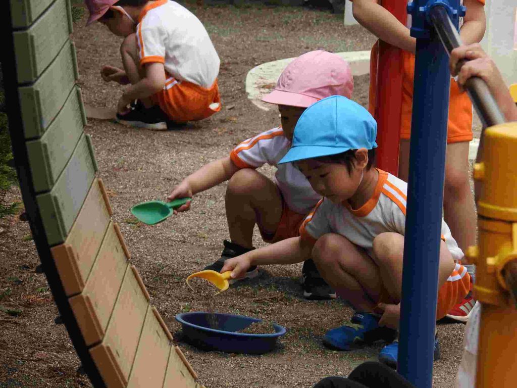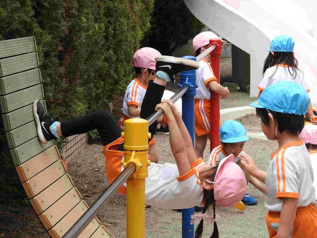 今日の年中組、自由遊びの様子です。園庭とホールで遊びました。学年が上がり、新しい友だちとも遊べるようになっています。