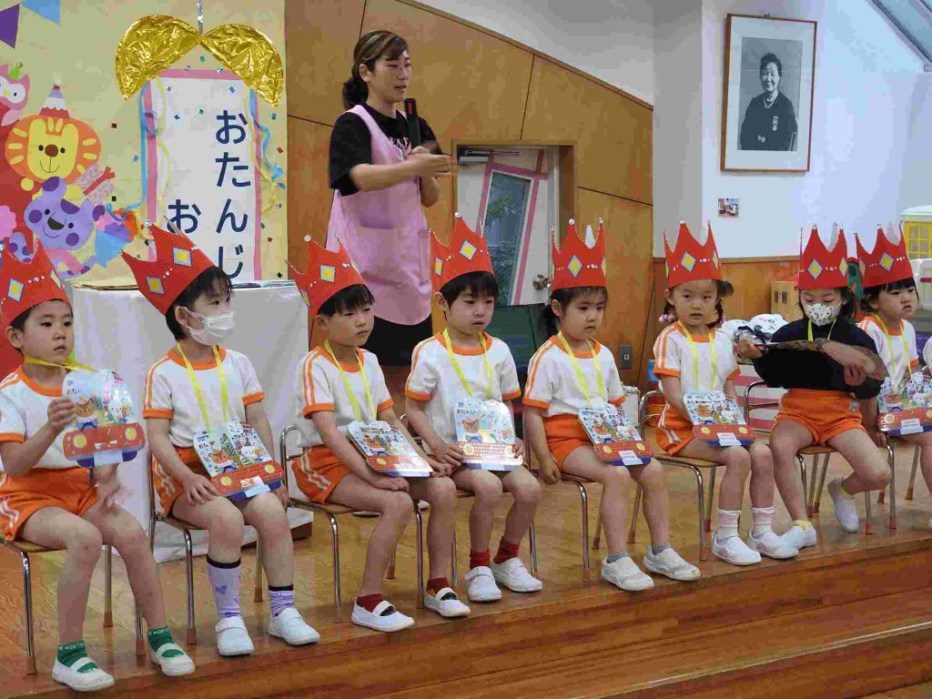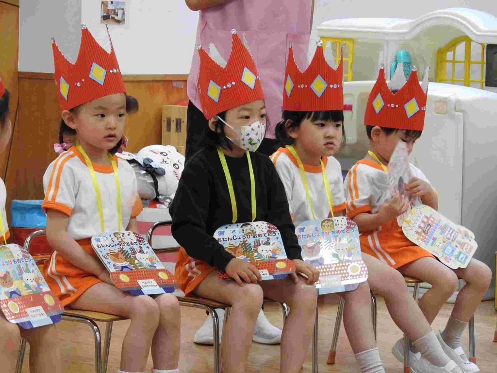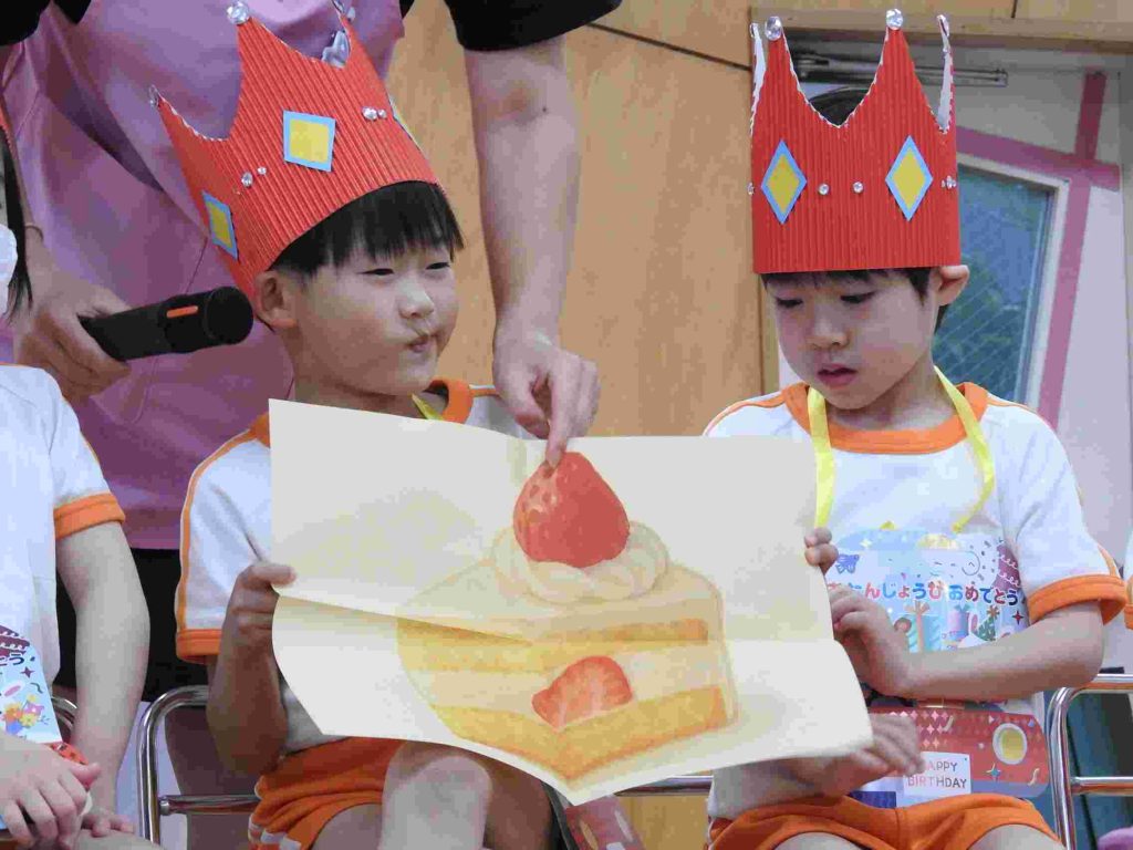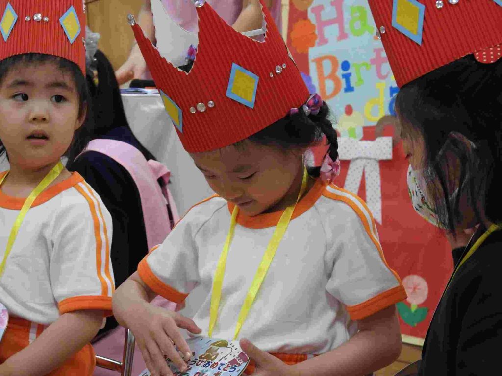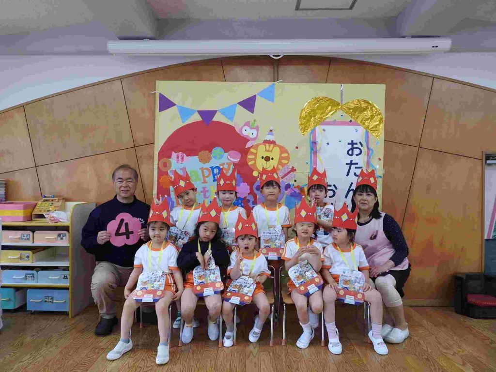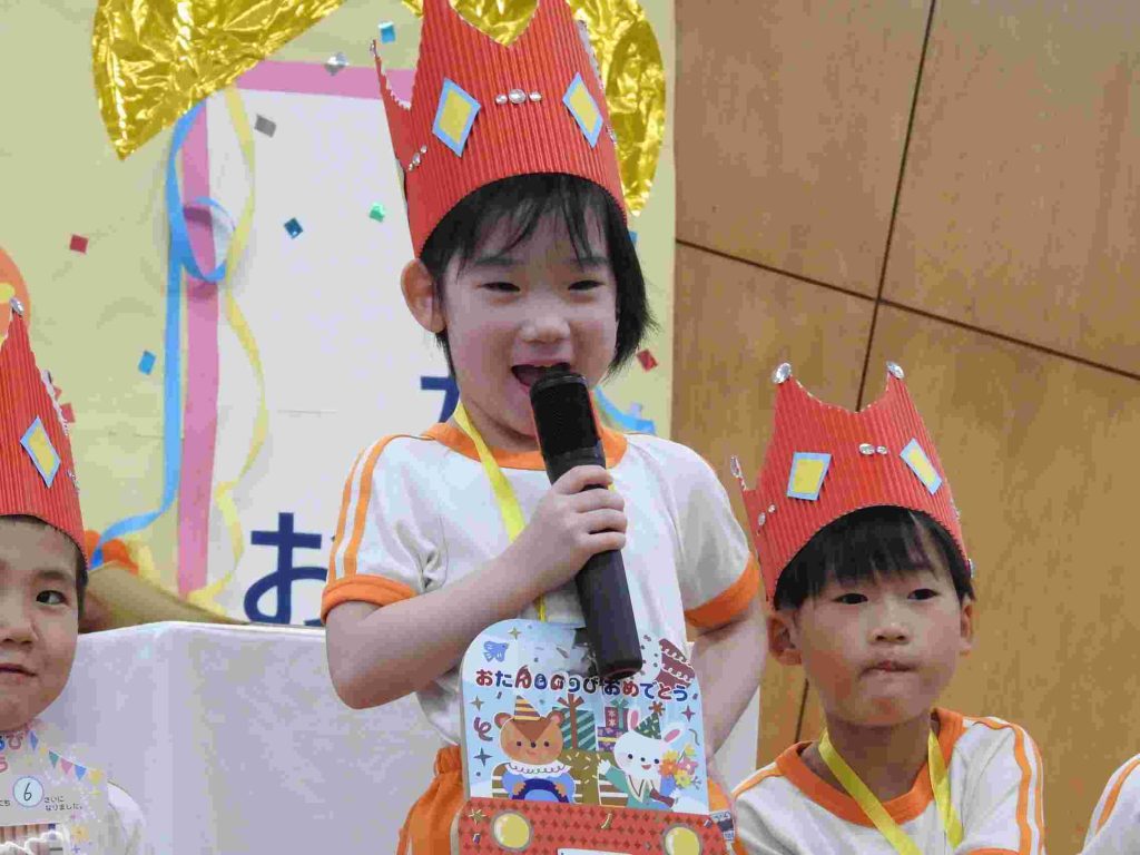 今日は4月の誕生日会でした。みんなの前に座って、マイクを向けられると、誰でもドキドキするものです。それでも一生懸命名前や年齢を言って、質問に答えるのはいい経験になります。家に帰ったら「何を話したの?」という会話になることを期待しています。